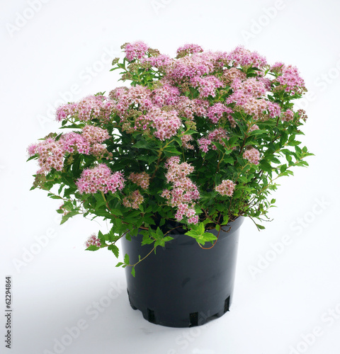 Spiraea japonica Japanese Dwarf in a pot on a white background