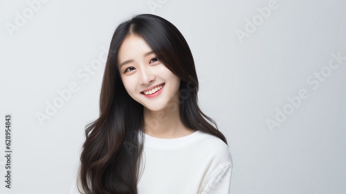 Young Asian beauty woman curly long hair with korean makeup style. Facial treatment, Cosmetology, plastic surgery