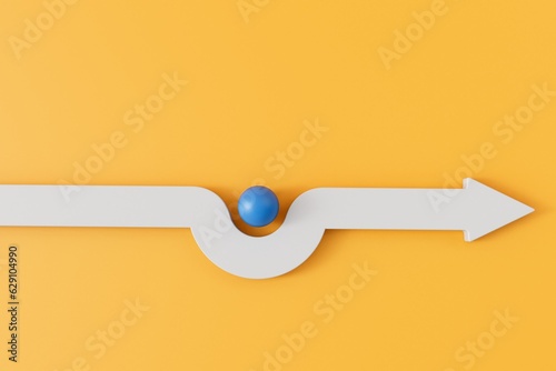 A white business direction arrow moves around an obstacle that is in its path. 3D Rendering