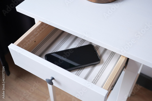 mobile phone in open drawer