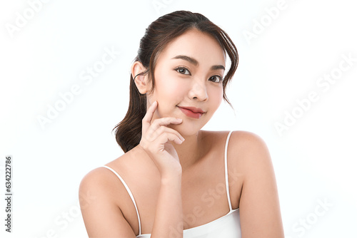 Beautiful young asian woman with clean fresh skin on white background, Face care, Facial treatment, Cosmetology, beauty and spa, Asian women portrait.