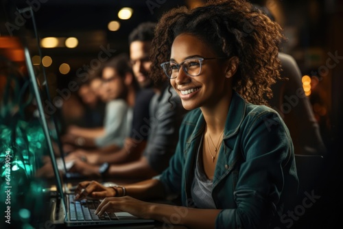 programmer In a coding bootcamp determined and innovative woman programs software