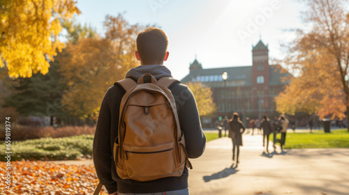 college student, backpack in tow, embarks on a new semester by foot