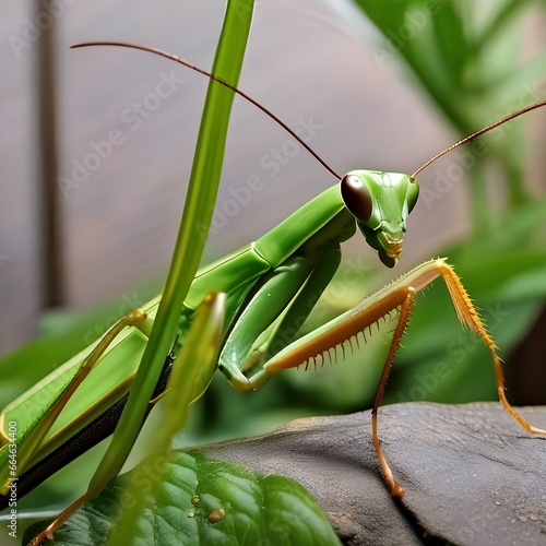 A heroic praying mantis with martial arts skills, defending the garden from invaders2