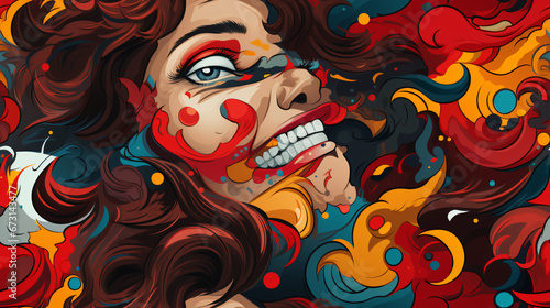 Seamless pattern in a trendy pop art style. Retro comics, devil horror ladies emoticons.