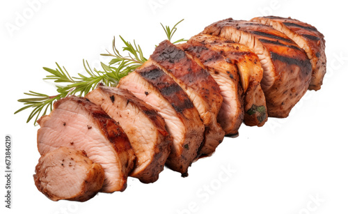 Closeup of tasty pork tenderloins isolated on transparent background