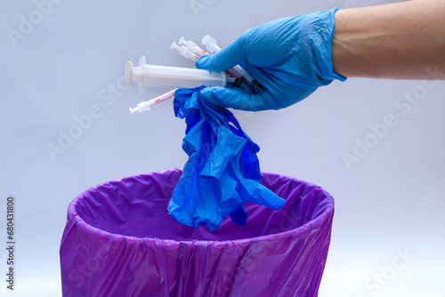 Odpady medyczne, wyrzucać zużyte rękawiczki i strzykawki do kosza