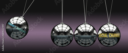 Community involvement leads to Social change. Cause and effect relation between them.,3d illustration