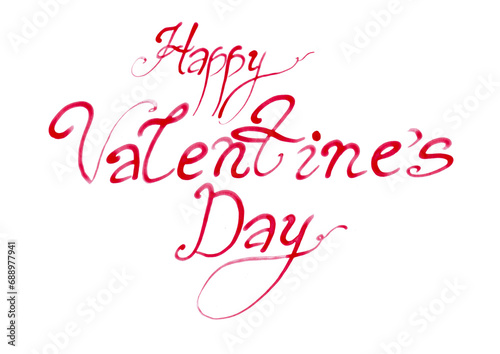 Happy valentines day words isolated on white background. Italic sweeping font. Different shades of letters. Red color. The words Valentine's Day are larger.