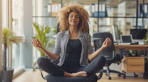 Une femme fait du yoga pour se détendre au travail dans le cadre de la qvt