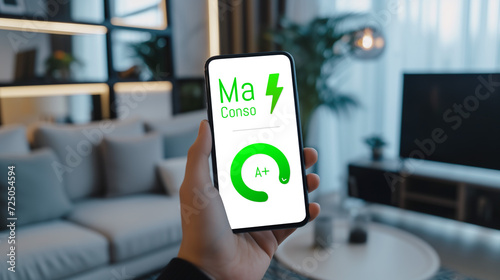 Un particulier consulte sa consommation d'électricité sur son smartphone avec l'application de son fournisseur d'énergie