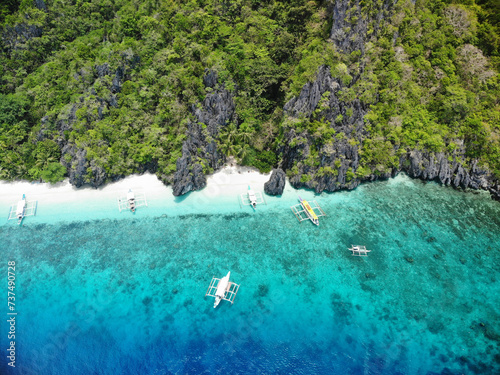 Wooden boats on the shore of a tropical beach