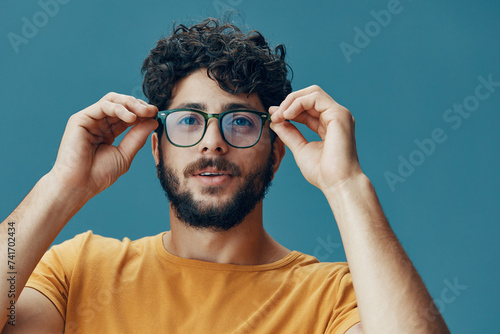 Portrait young fashionable person face attractive men background looking expression cool guy adult confident