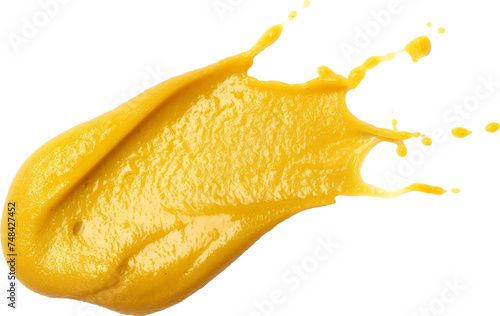 Mustard sauce splash isolated. Dijon honey mustard smeared cream.