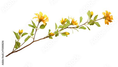 branch with yellow flowers isolated on transparent background cutout