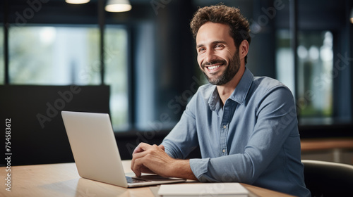 Middle aged man working on a laptop in his modern office