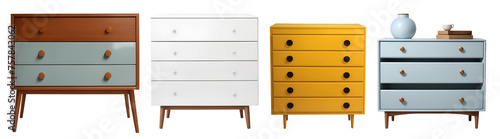 Set of various modern chest of drawers in different colours isolated on transparent background. Generative AI