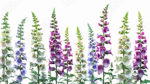Watercolor foxglove clipart with tall spires of colorful flowers , 3D render