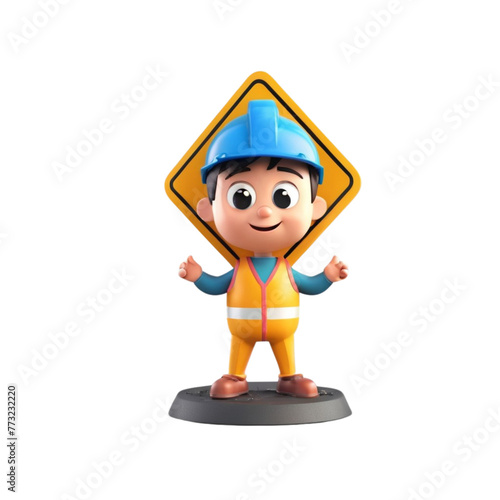 3d under construction road sign on Isolated transparent background png. generated with AI