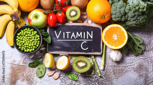 Assortment of Fresh Fruits and Vegetables Rich in Vitamin C