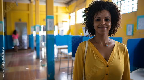 Elegante e carismática jovem afro votando nas eleições, cidadania democracia política eleitoral votação eleitor