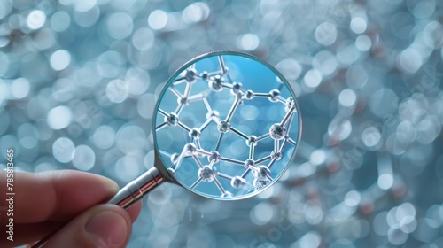A hand holds a magnifying glass over a diagram of an enzyme catalyzing a chemical reaction highlighting the intricate structures and mechanisms at work. .