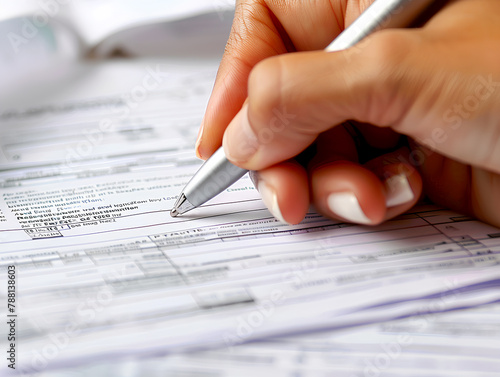 Person filling out forms, concept of detailed healthcare documentation and patient information. insurance concept.