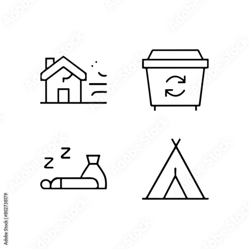 homeless outline icon set includes thin line donation, bunk bed, leftover, bridge, mittens, alcohol, food stall icons for report, presentation, diagram, web design
