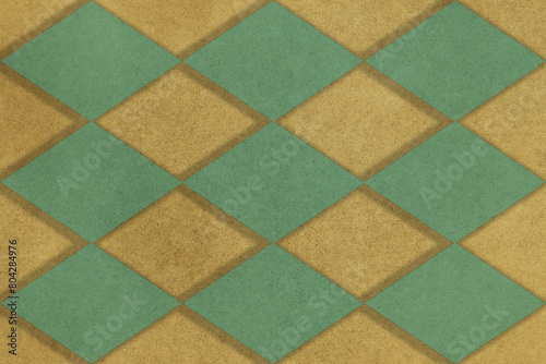 Abstrakcyjne tło, stłumione, przygaszone kolory, efekt tektury, romby. Iluzja, przenikanie.