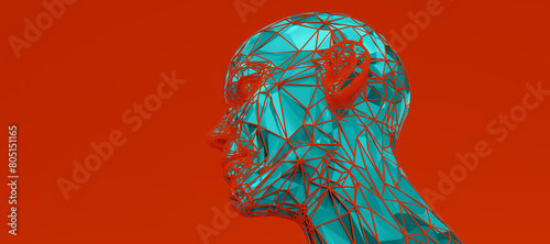 #847936490A vibrant, abstract representation of a human head, showcasing intricate lines resembling neural pathways against a blue background.