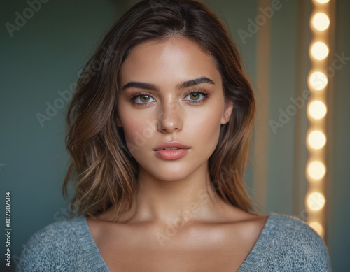 Ritratto in controluce di una donna con sguardo contemplativo e lineamenti delicati.