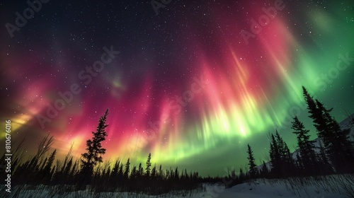 Zorza polarna jest widoczna na nocnym niebie, emitując niezwykłe światło w różnych kolorach. To naturalne zjawisko występujące w pobliżu biegunów magnetycznych Ziemi