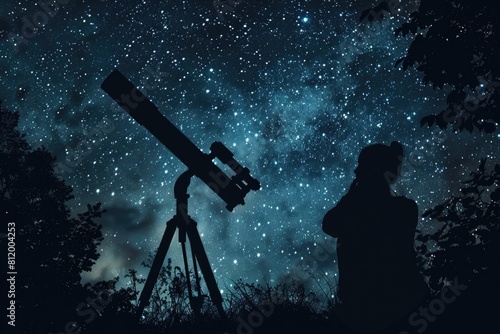A man observing stars through a telescope. Suitable for astronomy enthusiasts