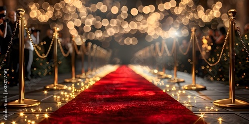 Red carpet at movie premiere with elegant setting and paparazzi. Concept Hollywood Glamour, Red Carpet Event, Movie Premiere, Elegant Setting, Paparazzi Shots