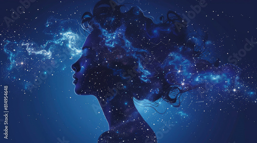 A digital artwork of a woman's silhouette merging with a starry night sky, symbolizing the cosmos blending with human imagination or consciousness.