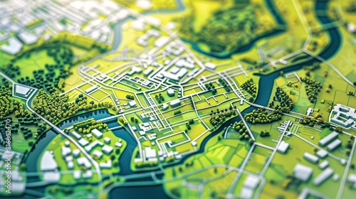Abstract architectural model of the city on the map. Architectural background.
