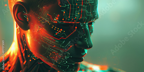 His body is a temple of tech, a living, breathing museum of cybernetics