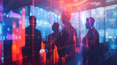Business team making decisions based on financial graphs close up, focus on, decision making, ethereal, Multilayer, executive office