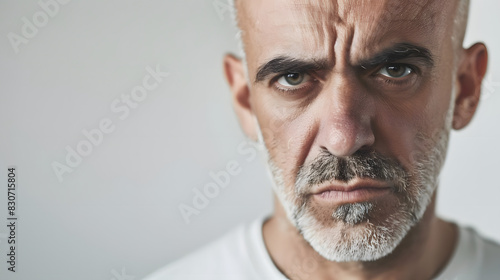 middle aged man with a serious and intense look on white backdrop. generative ai