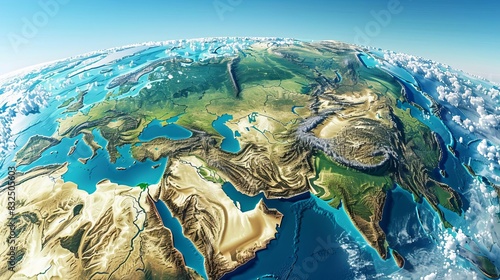realistic 3d physical map of eurasia europe and asia flattened satellite view of earth