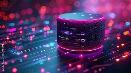 Voice-controlled electronic smart speakers with devices controlled by a virtual assistant. Interactive Ai device modern landing pages.