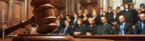 The decisive moment as a judges gavel strikes, captured in a courtroom filled with anticipation, highlighting the judiciarys role