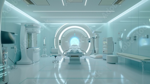Modern MRI machine in a sterile hospital room, showcasing advanced medical imaging technology for precise diagnostics and patient centred care.