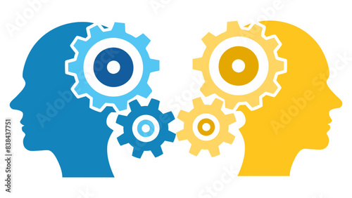 Gearing Minds: Illustration of a head silhouette filled with gears, representing technology, teamwork, and industry concepts