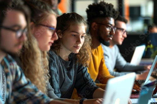 Diverse Team Collaborating at a Hackathon for Problem-Solving and Innovation