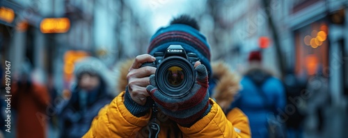 Photographer taking a photo in urban area