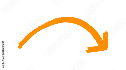 Gemalter oranger geschwungener Pinselpfeil nach rechts