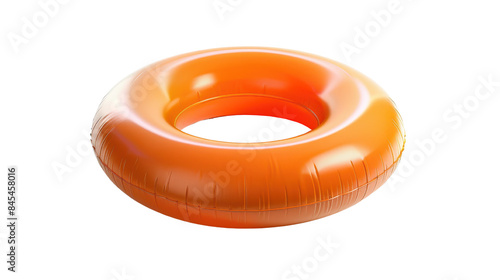 Bright orange inflatable swim ring isolated on a white background, ideal for summer fun and water activities.
