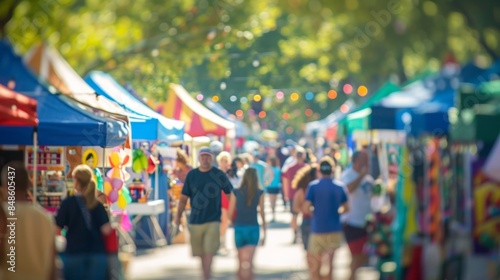 Obscured shot of a community fair with various booths showcasing local businesses.