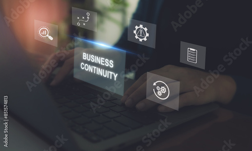 Business continuity concept. Planning and implementing strategies to ensure the business continue in the event of a disruption. Maintain operations, reputation and minimizing financial losses.